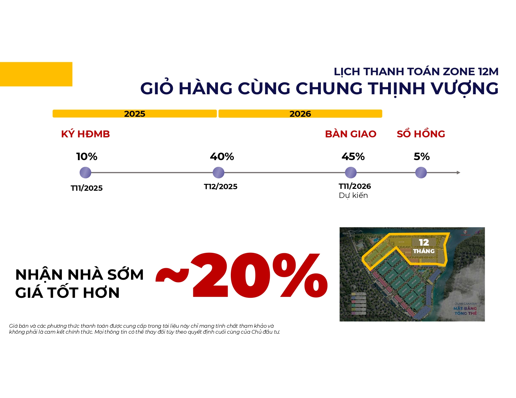 1. Lịch thanh toán Zone 12M (12 tháng nhận nhà) - Giá ưu đãi ~20%:
