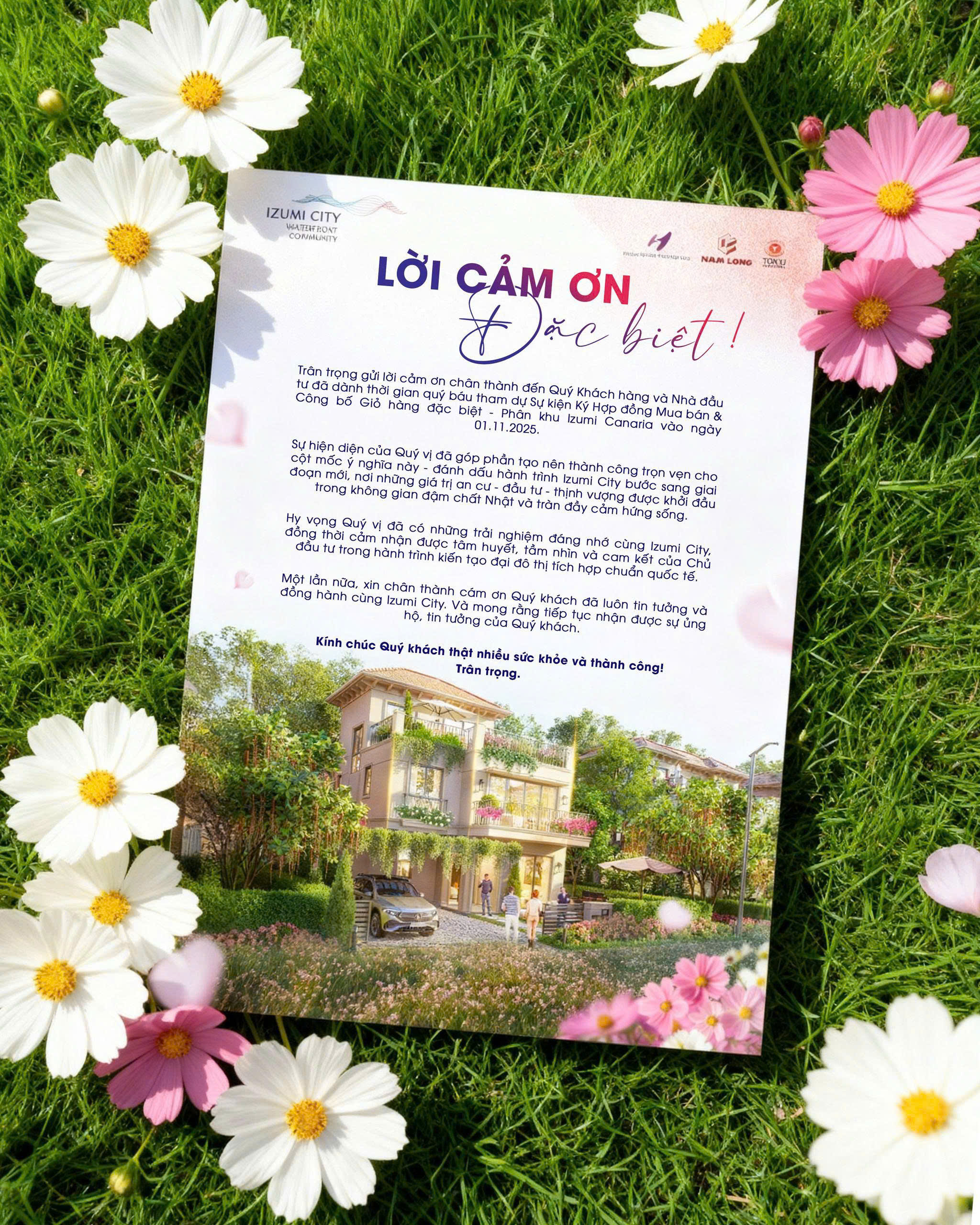 Lời cám ơn đặc biệt sau khi mở bán rất thành công phân khu Izumi Canaria giỏ hàng đợt 1 tháng 11 năm 2025